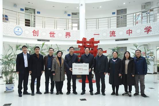 (通讯员:熊航、叶静)12月3日下午,华中师范大学和华中师范大学第一附属中学联合申报的湖北省省级研究生工作站“华中师范大学教学研一体化研究生联合培养工作站”授牌仪式在华中师范大学第一附属中学行政楼2楼会议室举行。我校研究生院周宗奎院长、叶飞副院长、生命科学学院邱保胜院长、谢波副院长、崔鸿教授、李娟副教授、物理学院曹阳副书记以及华中师范大学第一附属中学周鹏程校长、徐惠副校长、宋涛副校长、科教处董方奎主任、生物教研组长吴建阶、物理教研组长张杰、历史教研组长王晓宁、地理教研组长李斌、政治组代表黄吴静等老师,研究生代表熊航、叶静参加授牌仪式。授牌仪式由华中师范大学第一附属中学副校长徐惠主持。