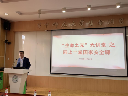 华大生科讯(通讯员:金姝玉)为深入学习宣传贯彻党的二十大精神,进一步加强学院理论宣传教育工作,学院党委于近期成立理论宣讲团,打造集理论宣讲、政策研读、专业交流、文化传播等于一体的“生命之光大讲堂”。10月21日下午,“生命之光大讲堂”第一讲在我院5301报告厅举办,邀请校保卫处处长王东爽以“同上一堂国家安全课”为主题向全院教职工进行宣讲,进一步提高全院教职工的安全意识,筑牢安全防线。本期培训由院党委书记郑宁主持。