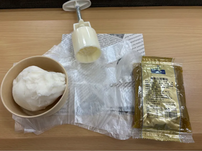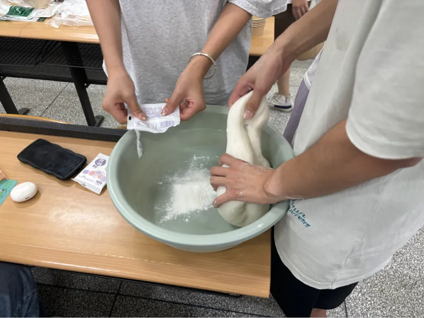 活动伊始,年级学生会主席王雨欣介绍冰皮月饼制作的步骤:和面—搓面团—压饼皮—包馅料—压成型。接着,由年级学生会的同学们为各小组分发面团、手套、模具、馅料及包装袋。随后,在轻松愉快的氛围中,同学们纷纷戴上手套,开始了冰皮月饼的制作。